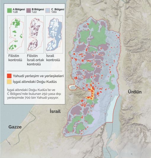 Şimdi bu noktada Filistin yerleşim bölgelerinini anlatılması gerekiyor.
