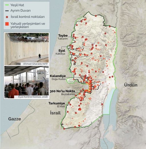 Batı Şeria'daki İsrail ayrım duvarı ve kontrol noktaları: