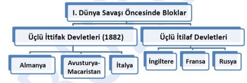 Bu tarihten sonra dünya iki bloka ayrılıyor. Bir tarafta İngiltere, Fransa, İtalya, Rusya, Sırbistan, Karadağ, Belçika, Yunanistan, Japonya, Romanya ve ABD’nin oluşturduğu İtilaf devletleri, diğer tarafta ise Almanya, Avusturya, Macaristan, Bulgaristan ve Osmanlı devletinin oluşturduğu İttifak devletleri yer alıyor.
