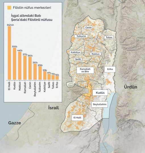 Batı Şeria’da bulunan yerleşim birimleri ve Filistinli nüfusu:
