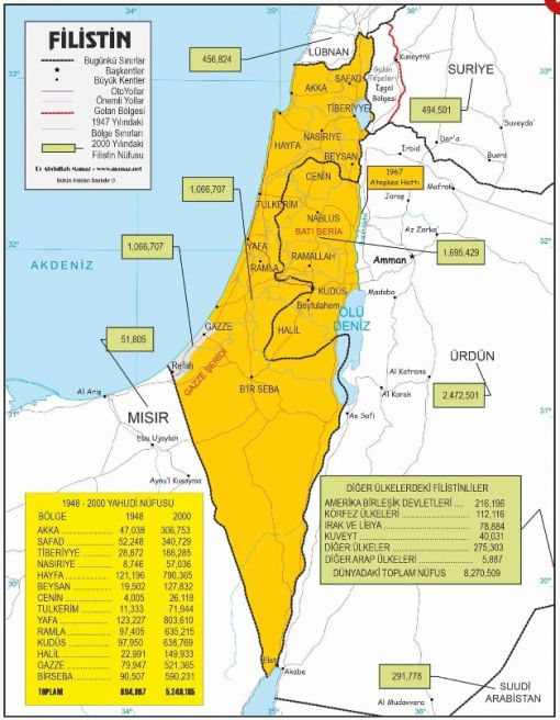 Şimdi bu noktada Filistin yerleşim bölgelerinini anlatılması gerekiyor.
