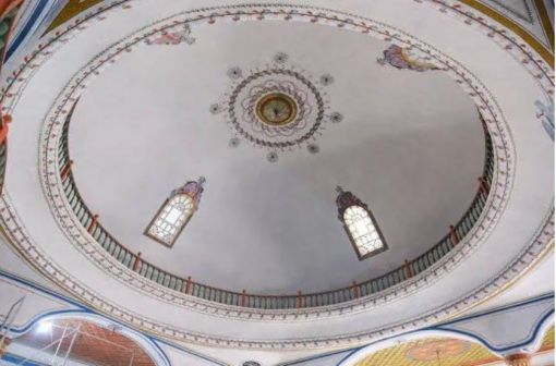 5. Bursa Şehzade Mustafa Türbesi kubbesi restorasyon sonrası kapatılan barok süsleme.